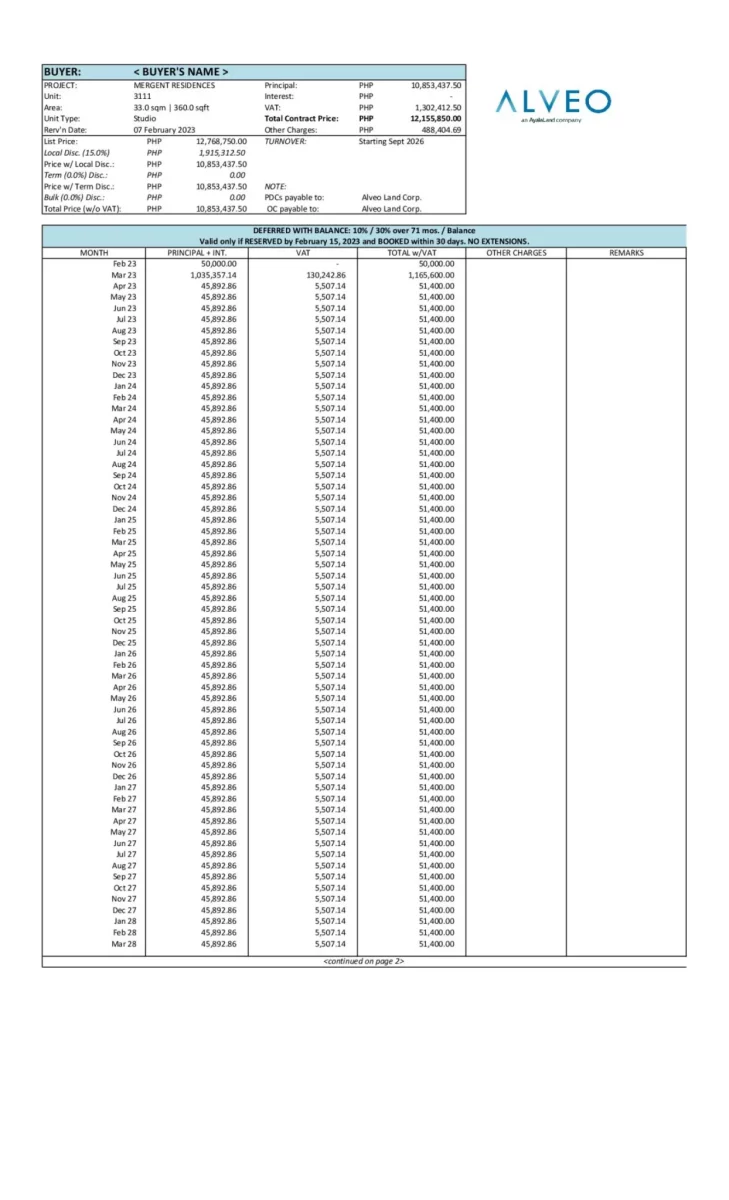 All messages, particulars, details, and views expressed are those of the person/s named and are not of the company. Ayala Land International Sales, Inc. does not represent or endorse the accuracy or reliability of any information, content, claims, or advertisements contained on, distributed through, or linked, downloaded, or accessed from this material, nor the quality of any products. The material presented herein is strictly private and unofficial. Information or any other material displayed or obtained by the viewer as a result of an advertisement, or any other information or offer in or in connection with the material herein. Wherever possible, the copyright holders of the pictures and other copyrighted material used on this site have been asked for their permission before publication. Ayala Land International Sales, Inc., will not be liable for any errors or omissions in any information provided, nor for any losses, injuries, or damages from the display or use of this material.